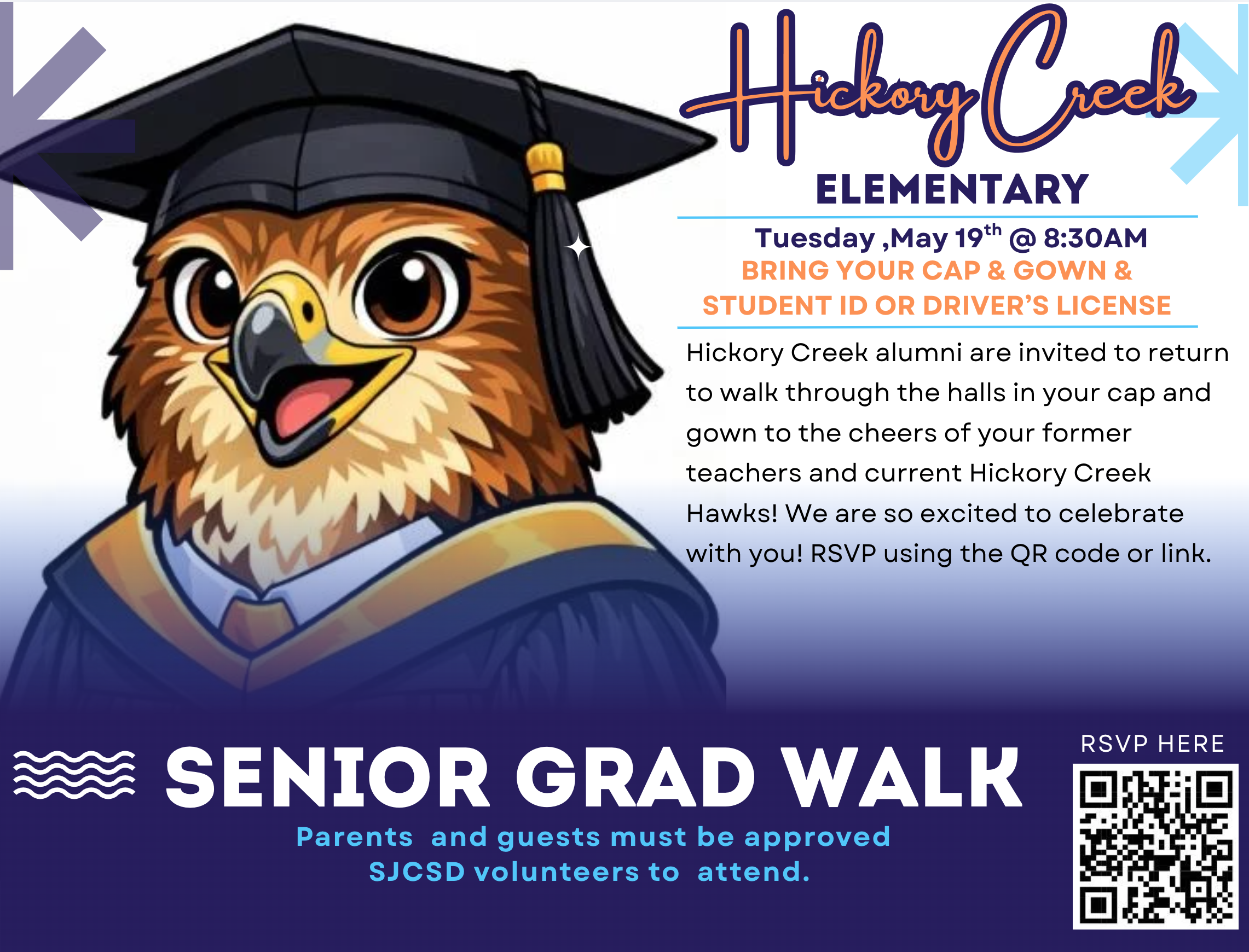 MAY 3 – 8 Teacher/Staff/Appreciation Week 19 – Senior Grad Walk @ 8:30AM 25 – MEMORIAL DAY (NO SCHOOL) 26 – 5th Grade Promotion Ceremony at SPMS @ 6:00PM 29 – Last Day of School/Early Release 29 – Report Cards Issued